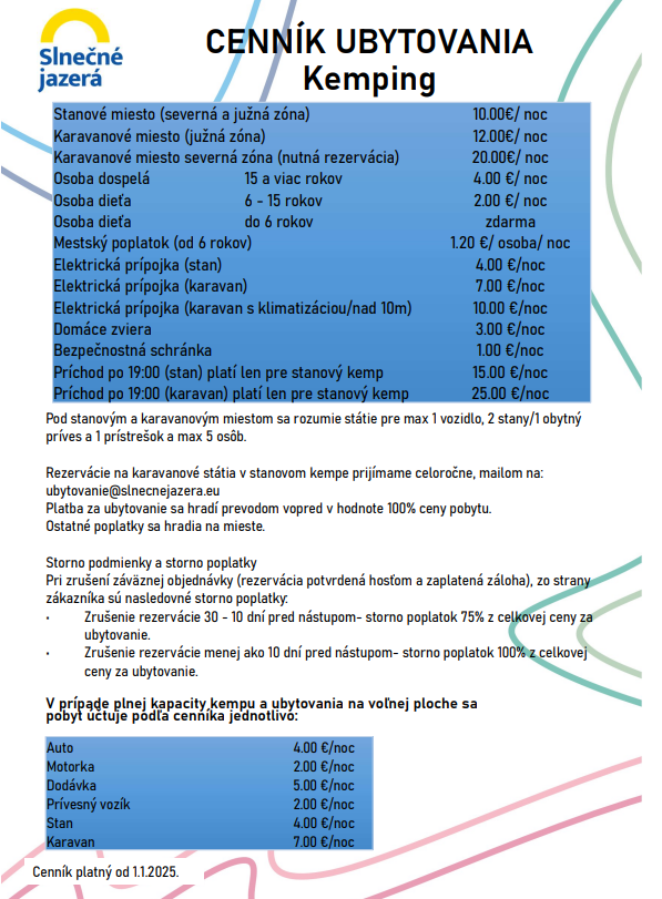 alebo nám napíšte mailom na: ubytovanie@slnecnejazera.sk