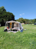 Modrá Farma is a campsite with 20 spacious camping pitches and four special accommodations. Pieces of land on the sloping campsite have been leveled. This means you can come to us with a camper, tent or caravan. Almost all pitches have an electricity connection. The centerpiece of the campsite is the cozy terrace where you can have a drink and a bite to eat a few times a week.