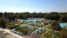 Na ploche 18 hektárov sú návštevníkom k dispozícii štyri vnútorné a šesť vonkajších bazénov. Termálna voda s teplotou do 39 °C, ktorá vyviera z hĺbky 1.600 metrov, má priaznivé účinky na pohybové ústrojenstvo a na poúrazové stavy.